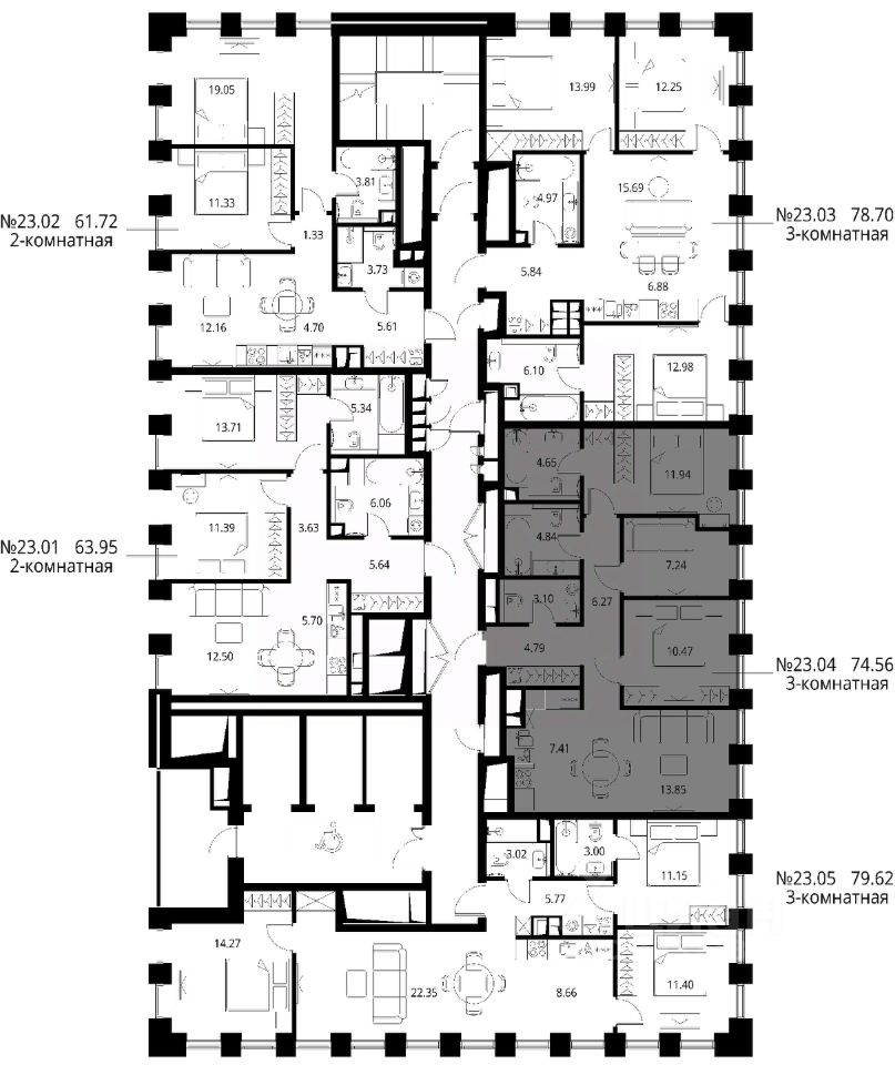 Продаётся 3-к квартира общей площадью 74.56 м² с предчистовой отделкой в ЖК City Вау, квартале North, на 23-м этаже 27 этажного дома.
