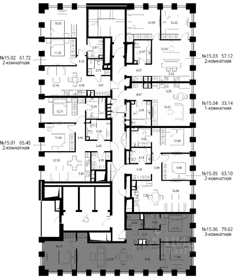 Продаётся 3-комнатная квартира общей площадью 79.62 м² с предчистовой отделкой в ЖК Сити Бэй, квартале Норс, на 15-м этаже 27 этажного дома.