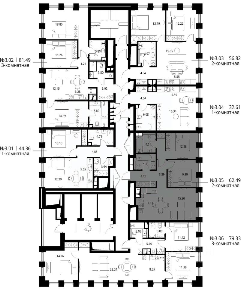 Продаётся 2-комнатная квартира общей площадью 62.49 м² с предчистовой отделкой в ЖК Сити Бэй, квартале Норс, на 3-м этаже 27 этажного дома.