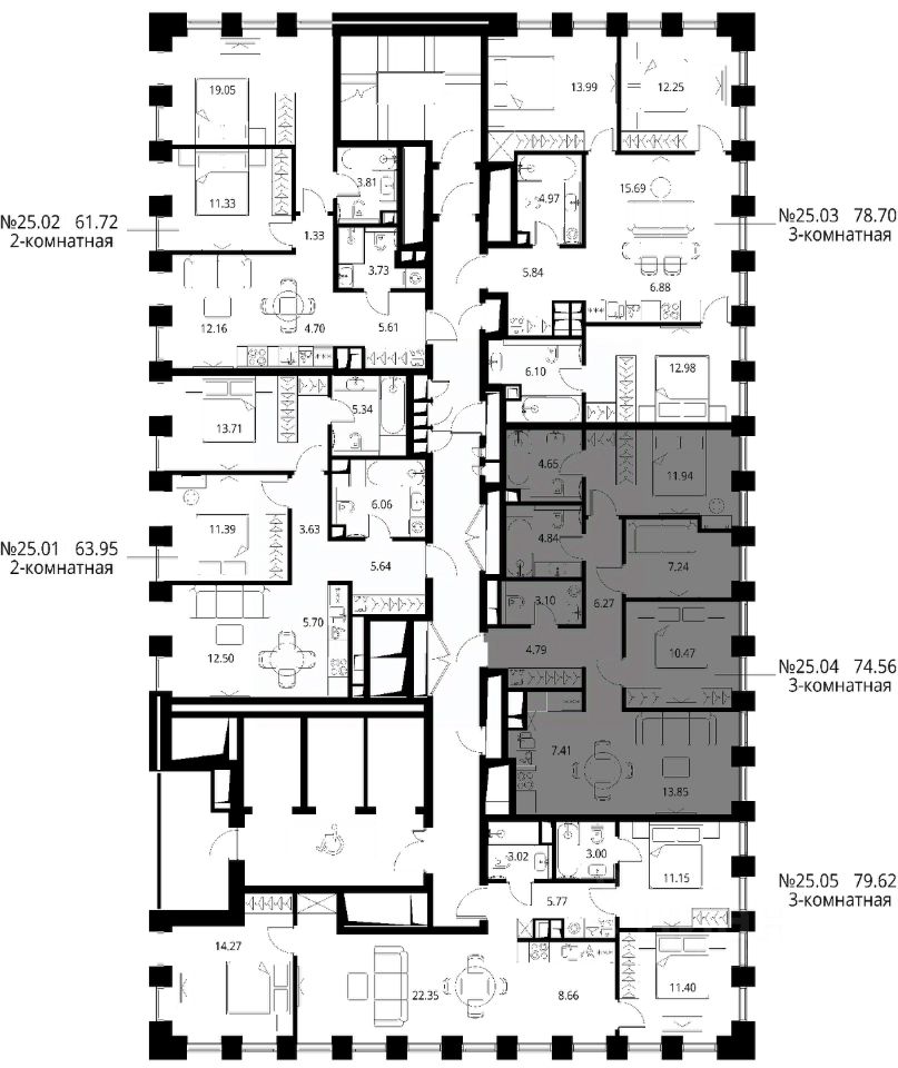 Продаётся 3-комнатная квартира общей площадью 74.56 м² с предчистовой отделкой в ЖК City Вау, квартале North, на 25-м этаже 27 этажного дома.