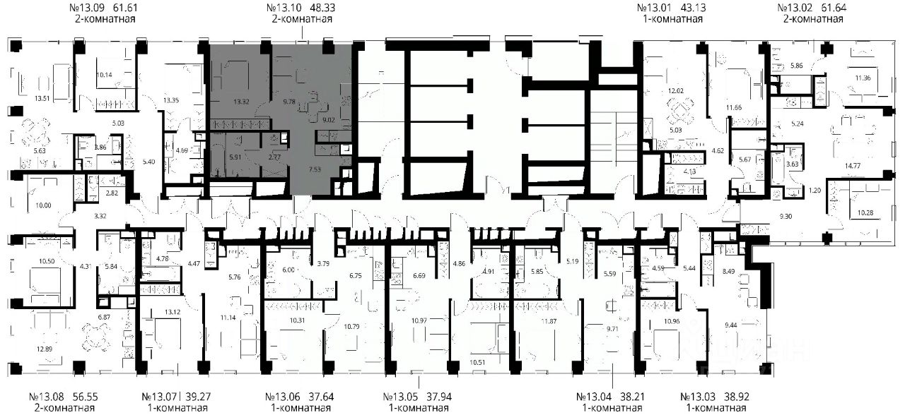 Продаётся 1-к квартира общей площадью 48.33 м² с предчистовой отделкой в ЖК City Вау, квартале North, на 13-м этаже 48 этажного дома.