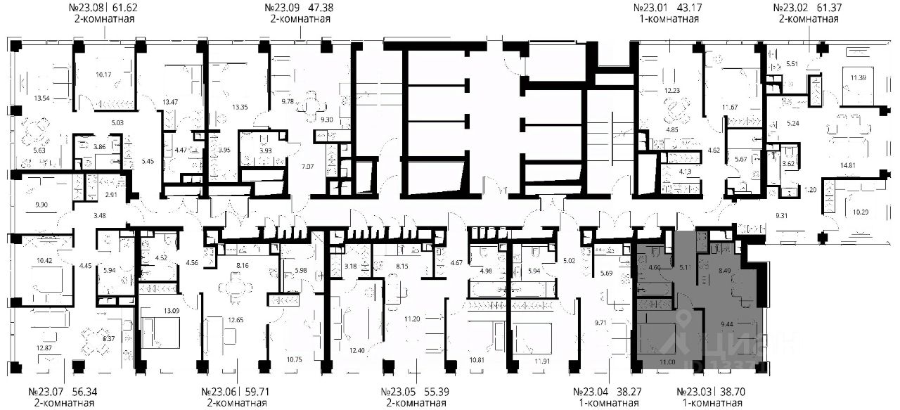 Продаётся 1-к квартира общей площадью 38.70 м² с предчистовой отделкой в ЖК City Вау, квартале North, на 23-м этаже 48 этажного дома.