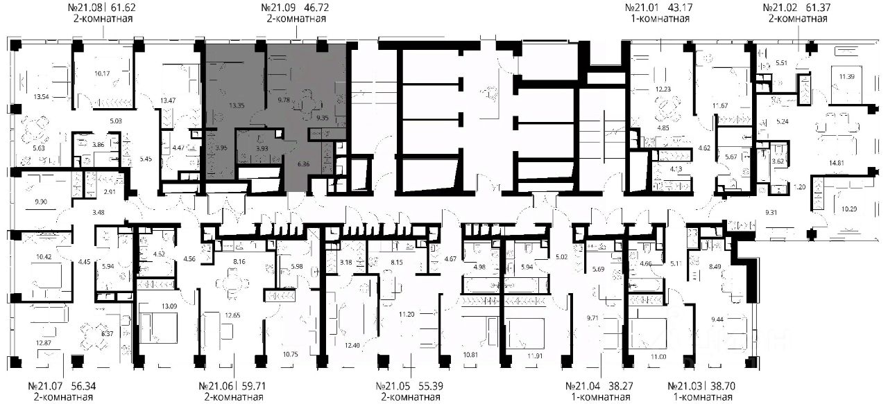 Продаётся 1-к квартира общей площадью 46.72 м² с предчистовой отделкой в ЖК City Вау, квартале North, на 21-м этаже 48 этажного дома.