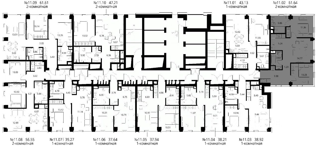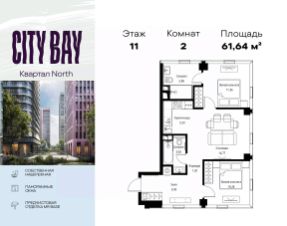 Продаётся 2-комнатная квартира общей площадью 61.64 м² с предчистовой отделкой в ЖК City Вау, квартале North, на 11-м этаже 48 этажного дома.