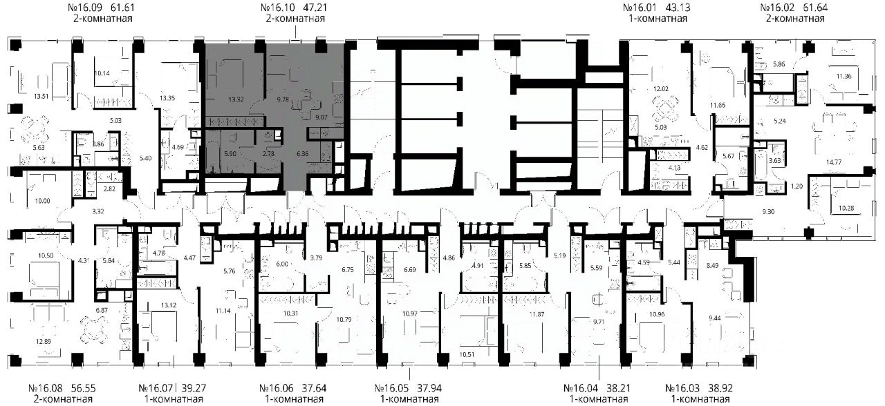 Продаётся 1-комнатная квартира общей площадью 47.21 м² с предчистовой отделкой в ЖК Сити Бэй, квартале Норс, на 16-м этаже 48 этажного дома.