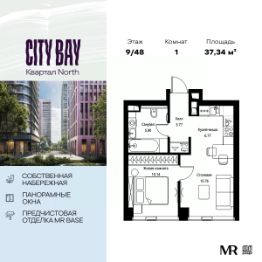 Продаётся 1-к квартира общей площадью 37.34 м² с предчистовой отделкой в ЖК City Вау, квартале North, на 9-м этаже 48 этажного дома.