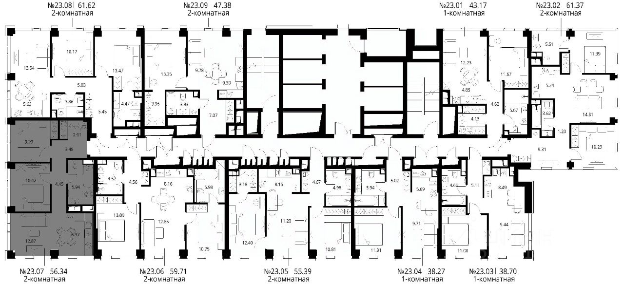 Продаётся 2-комнатная квартира общей площадью 56.34 м² с предчистовой отделкой в ЖК City Вау, квартале North, на 23-м этаже 48 этажного дома.