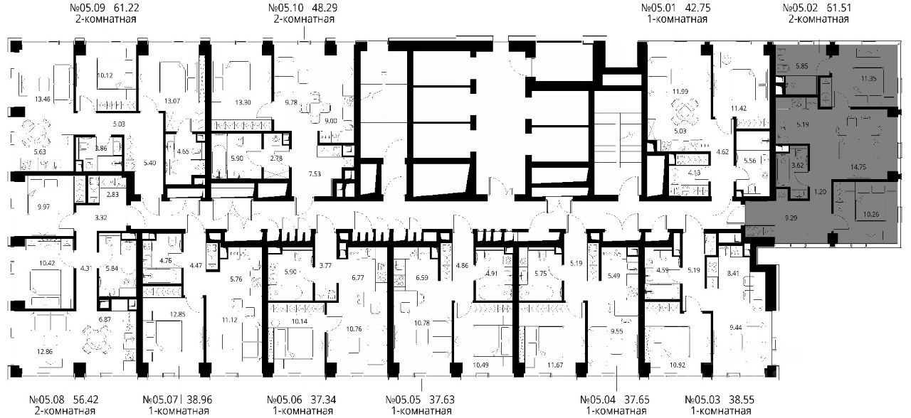 Продаётся 2-комнатная квартира общей площадью 61.51 м² с предчистовой отделкой в ЖК Сити Бэй, квартале Норс, на 5-м этаже 48 этажного дома.