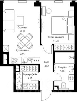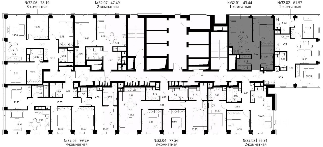 Продаётся 1-комнатная квартира общей площадью 43.44 м² с предчистовой отделкой в ЖК City Вау, квартале North, на 32-м этаже 48 этажного дома.