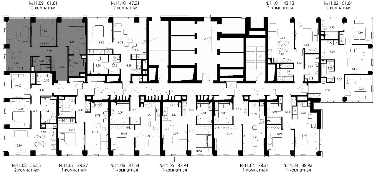 Продаётся 2-к квартира общей площадью 61.61 м² с предчистовой отделкой в ЖК City Вау, квартале North, на 11-м этаже 48 этажного дома.