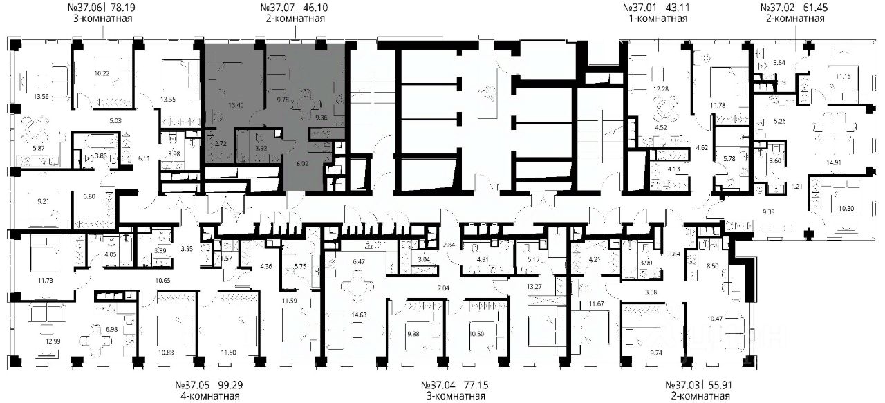Продаётся 1-комнатная квартира общей площадью 46.10 м² с предчистовой отделкой в ЖК Сити Бэй, квартале Норс, на 37-м этаже 48 этажного дома.