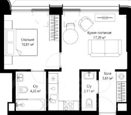 Продаётся 1-комнатная квартира общей площадью 38.08 м² с предчистовой отделкой в ЖК City Вау на 52-м этаже 53 этажного дома.