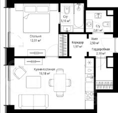 Продаётся 1-комнатная квартира общей площадью 43.61 м² с предчистовой отделкой в ЖК City Вау на 17-м этаже 53 этажного дома.