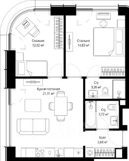 Продаётся 2-комнатная квартира общей площадью 59.42 м² с предчистовой отделкой в ЖК Сити Бэй на 26-м этаже 53 этажного дома.