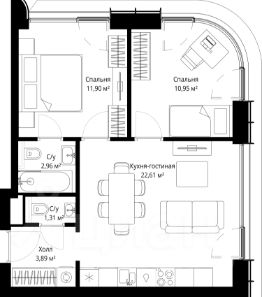 Продаётся 2-комнатная квартира общей площадью 53.62 м² с предчистовой отделкой в ЖК Сити Бэй на 32-м этаже 53 этажного дома.