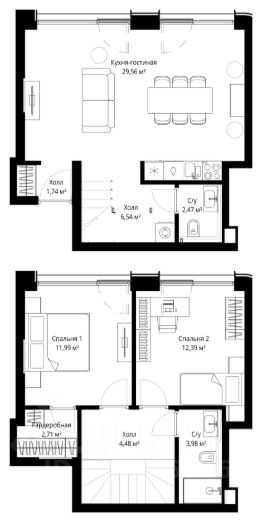 Продаётся 2-комнатная квартира общей площадью 75.30 м² с предчистовой отделкой в ЖК City Вау на 52-м этаже 53 этажного дома.