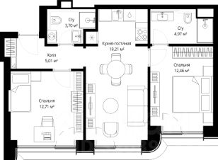 Продаётся 2-комнатная квартира общей площадью 57.80 м² с предчистовой отделкой в ЖК City Вау на 17-м этаже 53 этажного дома.