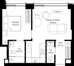 Продаётся 1-комнатная квартира общей площадью 39.30 м² с предчистовой отделкой в ЖК City Вау на 28-м этаже 53 этажного дома.