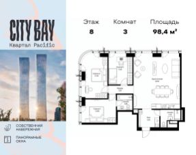 Продаётся 3-комнатная квартира общей площадью 98.40 м² без отделки в ЖК City Вау, квартале Pacific, на 8-м этаже 10 этажного дома.