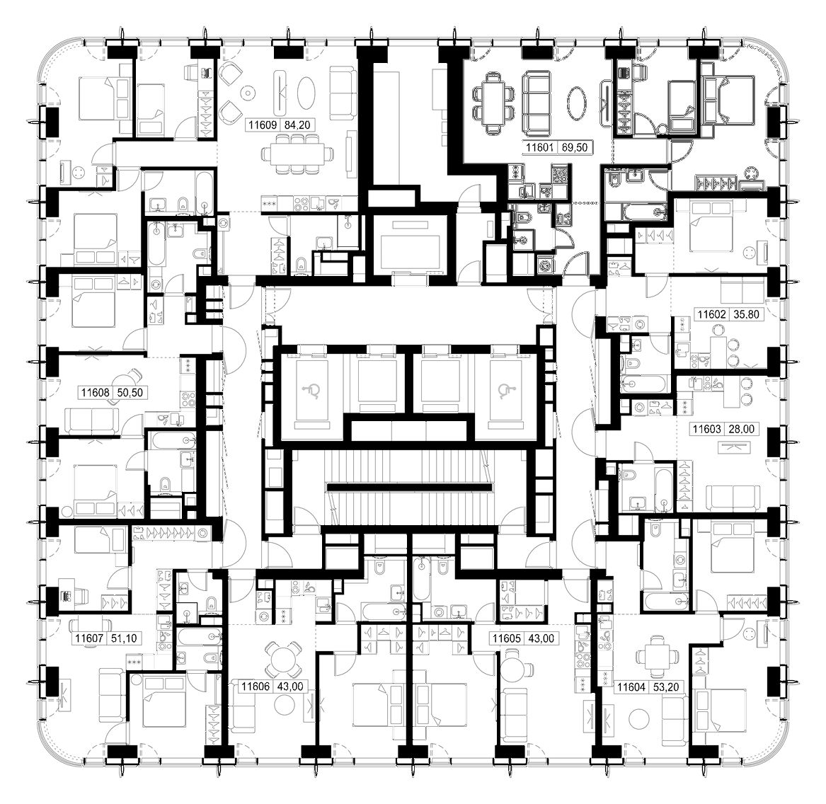 Продаётся 2-к квартира общей площадью 53.20 м² без отделки в ЖК City Вау, квартале Pacific, на 16-м этаже 18 этажного дома.