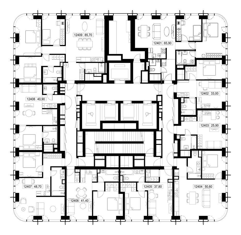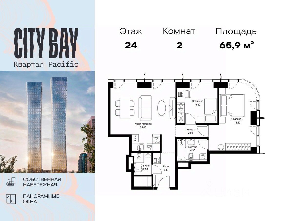Продаётся 2-комнатная квартира общей площадью 65.90 м² без отделки в ЖК City Вау, квартале Pacific, на 24-м этаже 26 этажного дома.