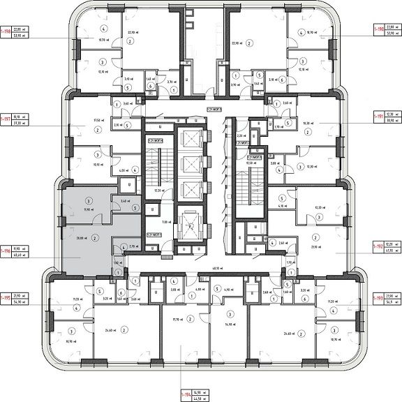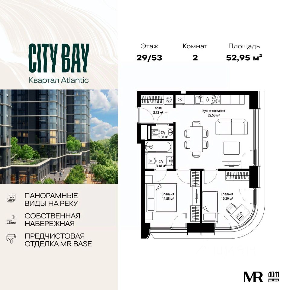 Продаётся 2-к квартира общей площадью 52.95 м² с предчистовой отделкой в ЖК City Вау на 29-м этаже 53 этажного дома.