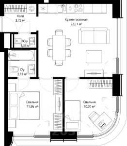 Продаётся 2-комнатная квартира общей площадью 52.90 м² с предчистовой отделкой в ЖК City Вау на 35-м этаже 53 этажного дома.