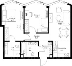 Продаётся 2-комнатная квартира общей площадью 64.59 м² без отделки в доме премиум-класса МИRА на 20-м этаже 24 этажного дома. Квартира расположена в корпусе 3.