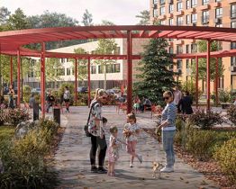 Проект задуман небольшим и уютным - в нём будет всего 4 корпуса с переменной высотой: 28, 33 и 38 этажей с подземным паркингом. Не территории мы построим детский сад на 150 малышей и школу для 350 учеников. А во дворе - зелёный парк с детскими и спортивными площадками и зонами для отдыха. На первых этажах откроются магазины, кафе и другие сервисы.