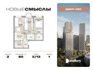 В жилом комплексе, расположенном по соседству с ландшафтным парком "Южное Бутово", продается 2-комнатная квартира площадью 60.00 кв. м. с отделкой. Квартира расположена на 2 этаже 1 корпуса в жилом квартале комфорт-класса "Новые Смыслы" (ГК Unikey/Юникей).