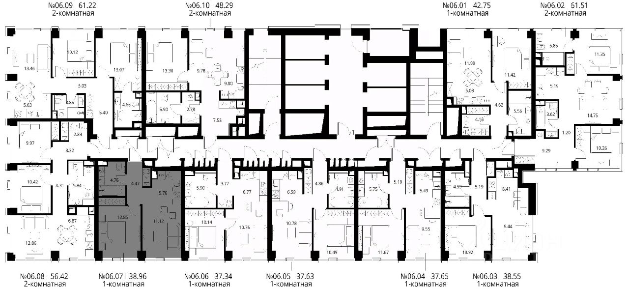 Продаётся 1-комнатная квартира общей площадью 38.96 м² с предчистовой отделкой в ЖК Сити Бэй, квартале Норс, на 6-м этаже 48 этажного дома.