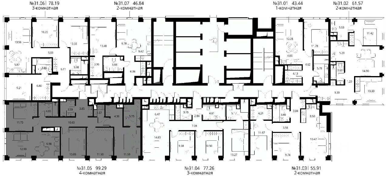 Продаётся 4-комнатная квартира общей площадью 99.29 м² с предчистовой отделкой в ЖК Сити Бэй, квартале Норс, на 31-м этаже 48 этажного дома.