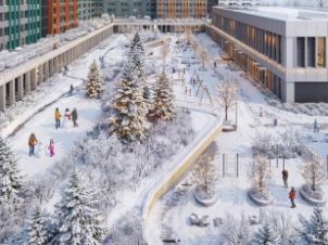 Внутренний двор Injoy продолжает общую концепцию благоустройства и включает в себя: три детские площадки для разных возрастов, зону work-out, природную озеленённую зону, променад с зонами для релакса, йоги и амфитеатром с арт-объектами. Закрытый двор, видеонаблюдение и контроль доступа обеспечивают безопасность каждому жителю комплекса.