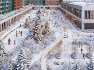 Внутренний двор Инджой продолжает общую концепцию благоустройства и включает в себя: три детские площадки для разных возрастов, зону work-out, природную озеленённую зону, променад с зонами для релакса, йоги и амфитеатром с арт-объектами. Закрытый двор, видеонаблюдение и контроль доступа обеспечивают безопасность каждому жителю комплекса.