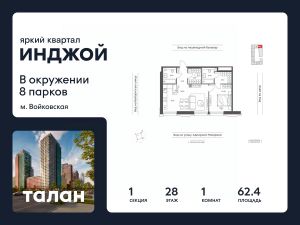 Прямая продажа от застройщика. В жилом квартале, расположенном в Войковском районе Москвы, продаётся 1-комнатная квартира площадью 62.4 кв.м без отделки. Квартира расположена на 28 этаже 35-этажного дома, корпус 1, в жилом квартале бизнес-класса Инджой.