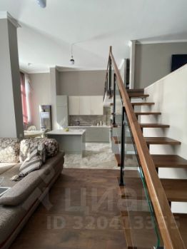 Дизайнерский ремонт, двух уровневая квартира. На первом этаже: просторная кухня- гостиная (кухонное пространство 14.4 кв. м и гостиная около 18 кв. м), просторный санузел, большая гардеробная комната. На втором уровне спальное пространство 12,7 кв. м и большая гардеробная комната (около 6 кв. м). Высота потолка второго уровня около 2 метров. Общая площадь с учетом 2 уровней и утепленного присоединения лоджии около 63 кв. м.
