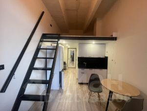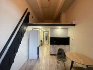 Студия с мебелью и техникой и ремонтом, натяжные потолки, ламинат на полу, металлическая входная дверь.