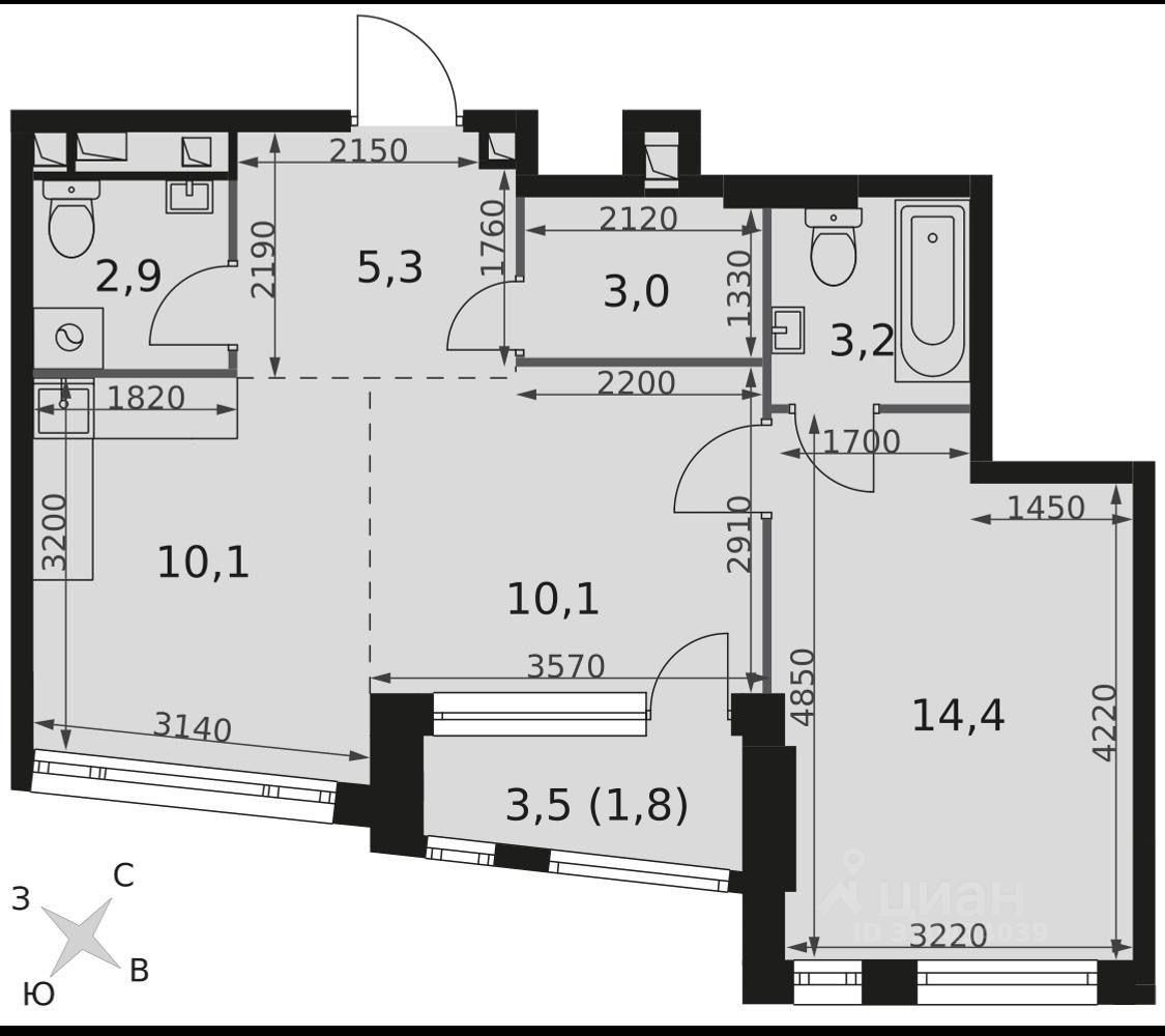 10,1 м²