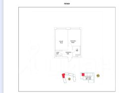 Общ площадь 42,7 м2. Кухня-гостиная 17 м2. Спальня 13, 3 м2. Высота потолков 3,1 м2.
