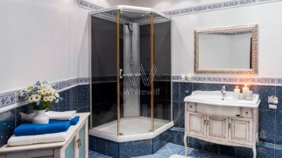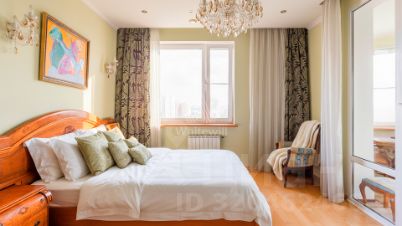 Видовая квартира с 3-мя спальнями в жилом комплексе "Олимп" рядом с парком Олимпийской деревни. Квартира общей площадью 159 м² расположена на 17-м этаже в корпусе 2. Интерьер в классическом стиле оформлен в бежевых пастельных тонах и дополнен фактурами светлого и темного дерева. Предусмотрены различные сценарии освещения: точечные светильники, изысканные люстры и настенные бра.