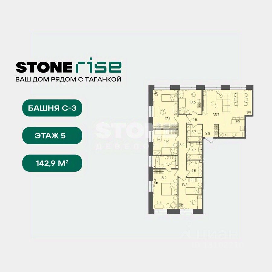В продаже светлая пятиспальная квартира с просторной кухней-гостиной, четырьмя спальнями и мастер-спальней с окном в санузле для реализации любого дизайн-решения, идеально подходящая большим семьям, члены которой уже нуждаются в личном пространстве и уединении. Квартира расположена в камерном низкоэтажном жилом комплексе бизнес+ в одной станции от кольца.