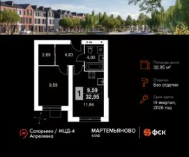 Продаётся 1-к квартира 2 общей площадью 32.95 кв.м на 1-м этаже 3 этажного дома. Без отделки.