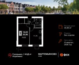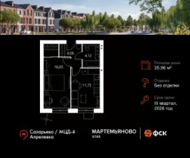 Продаётся 1-к квартира 4 общей площадью 35.96 кв.м на 1-м этаже 3 этажного дома. Без отделки.