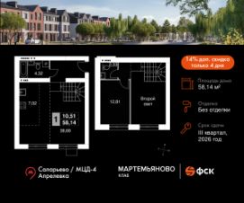 Продаётся 1-к квартира 17 общей площадью 58.14 кв.м на 3-м этаже 3 этажного дома. Без отделки.