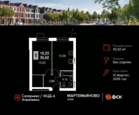 Продаётся 1-к квартира 15 общей площадью 35.62 кв.м на 2-м этаже 3 этажного дома. Без отделки.