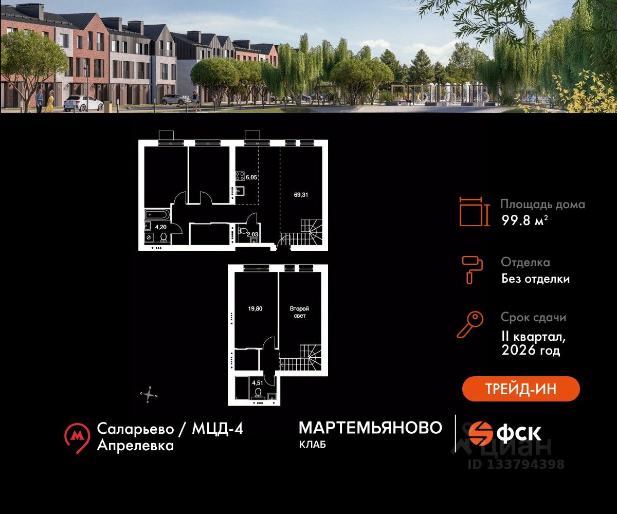 "Мартемьяново Клаб" - клубный поселок таунхаусов от ФСК в Наро-Фоминском городском округе. Счастливая жизнь складывается из плюсов двух миров: городского и загородного. Вы наслаждаетесь свежим воздухом, лесными пейзажами вокруг и отдыхом у собственного пруда. При этом пользуетесь комфортной инфраструктурой, всеми центральными коммуникациями, собственной современной школой и детским садом. Закрытая охраняемая территория дарит вам чувство спокойствия и безопасности. А заказать все услуги возможно через мобильное приложение управляющей компании. Выбираться во внешний мир легко благодаря хорошей транспортной доступности.