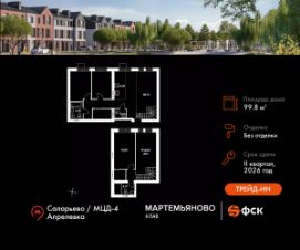 Продаётся 3-к квартира номер 39 общей площадью 99.85 кв.м на 3-м этаже 3 этажного дома. Без отделки.