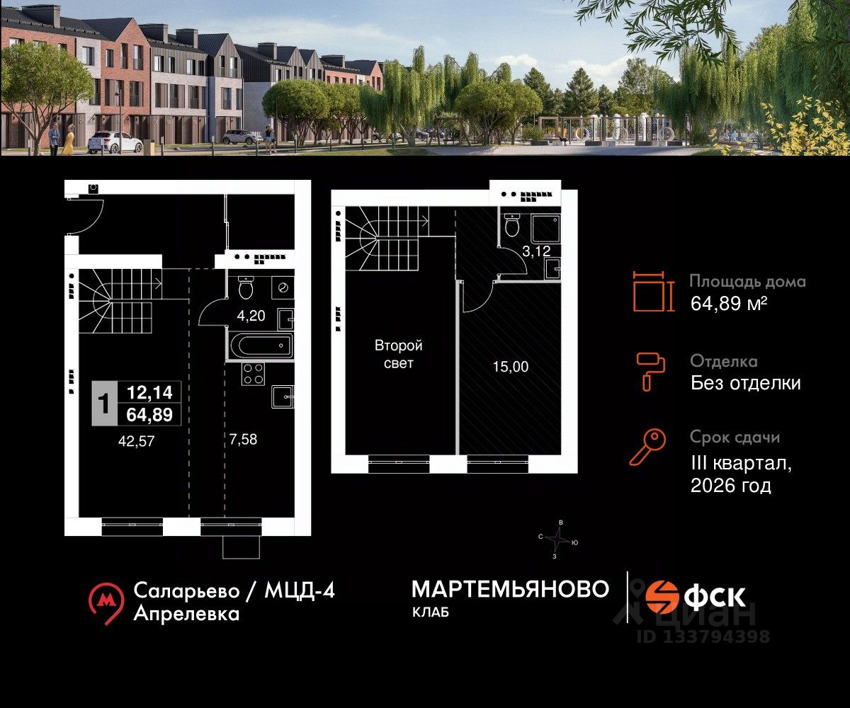 "Мартемьяново Клаб" - клубный поселок таунхаусов от ФСК в Наро-Фоминском городском округе. Счастливая жизнь складывается из плюсов двух миров: городского и загородного. Вы наслаждаетесь свежим воздухом, лесными пейзажами вокруг и отдыхом у собственного пруда. При этом пользуетесь комфортной инфраструктурой, всеми центральными коммуникациями, собственной современной школой и детским садом. Закрытая охраняемая территория дарит вам чувство спокойствия и безопасности. А заказать все услуги возможно через мобильное приложение управляющей компании. Выбираться во внешний мир легко благодаря хорошей транспортной доступности.