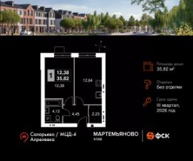 Продаётся 1-к квартира 98 общей площадью 35.82 кв.м на 2-м этаже 3 этажного дома. Без отделки.