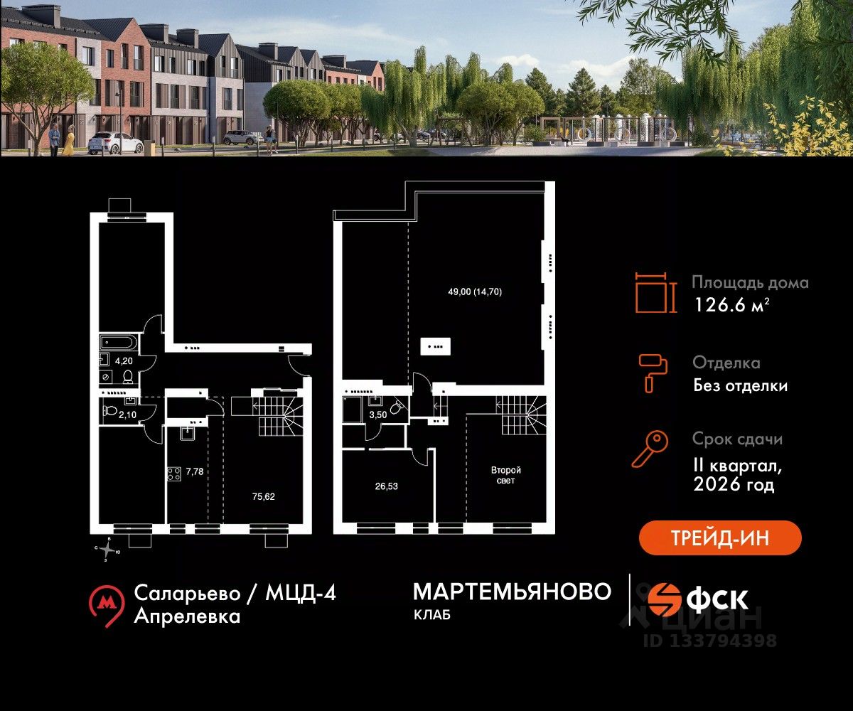 "Мартемьяново Клаб" - клубный поселок таунхаусов от ФСК в Наро-Фоминском городском округе. Счастливая жизнь складывается из плюсов двух миров: городского и загородного. Вы наслаждаетесь свежим воздухом, лесными пейзажами вокруг и отдыхом у собственного пруда. При этом пользуетесь комфортной инфраструктурой, всеми центральными коммуникациями, собственной современной школой и детским садом. Закрытая охраняемая территория дарит вам чувство спокойствия и безопасности. А заказать все услуги возможно через мобильное приложение управляющей компании. Выбираться во внешний мир легко благодаря хорошей транспортной доступности.